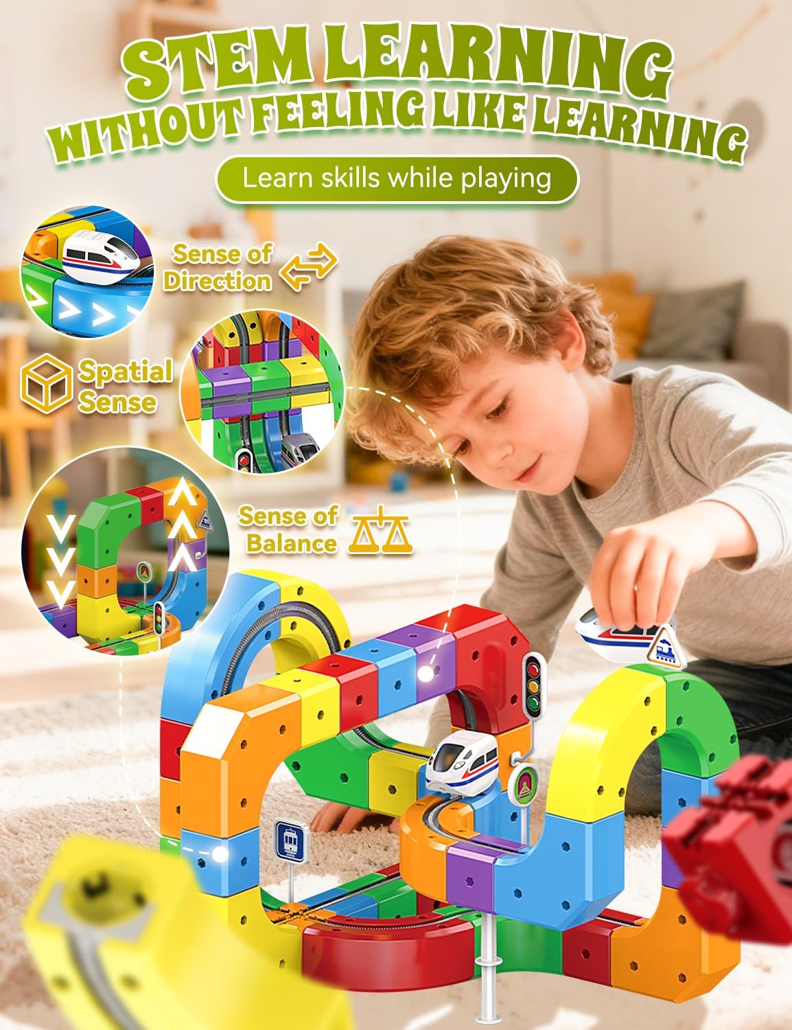 It’s time for a bigger, smarter playtime. WonderRail™’s 3D modular tracks let kids build climbs, loops, twists, and tunnels that spark imagination— all while developing STEM skills and creativity.